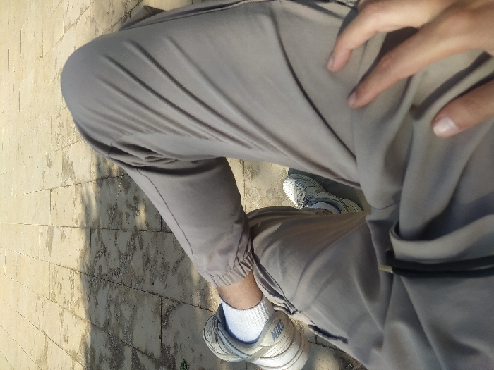 - "The image displays a first-person, downward-angle view of a seated individual's lower body outdoors in Casablanca, Morocco" by FM-MY37Y2, licensed under CC BY 4.0