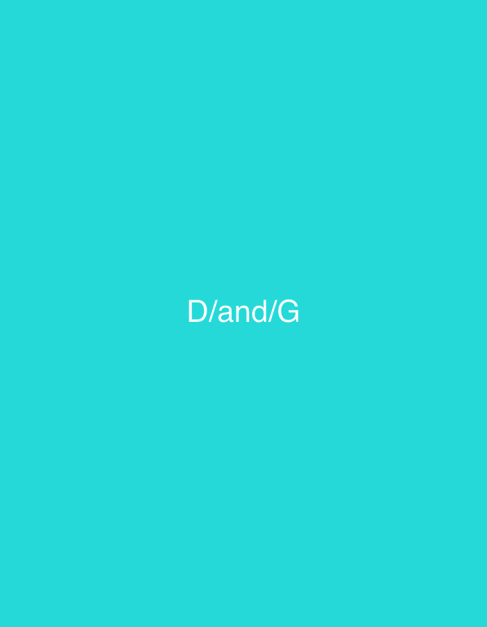 The image displays a solid teal background. Centered vertically and horizontally, the white capital letters "D/and/G" are presented. There are no discernible people, subjects, objects beyond the text, actions, interactions, or environmental features within the image that depict a specific physical location, such as the city of Krushovitsa, Bulgaria. The scene is exclusively a flat, monochromatic digital field.