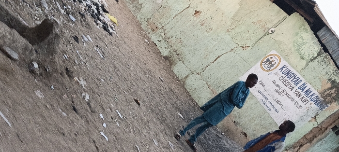 building with a sign that reads "KUNGIYAR DA NA KOWANE CHEDIYA YAN KIFI