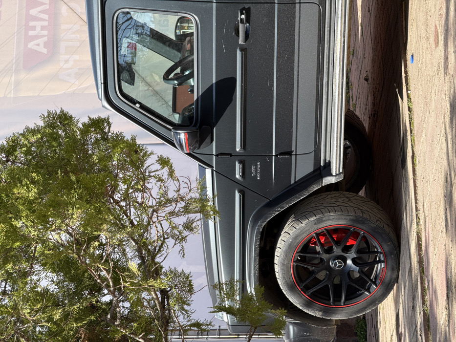 - "A dark gray metallic Mercedes-Benz G-Class SUV, displaying "V8 BITURBO" badging on its front fender, is parked on a light-colored paved surface, likely brick pavers, under direct sunlight" by FM-mnNz92, licensed under CC BY 4.0