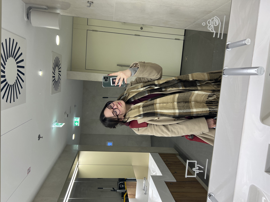 - "A female individual is depicted taking a mirror selfie in what appears to be a modern public restroom, consistent with a large public facility such as an airport, specifically suggesting Vienna International Airport located in Schwechat, Austria" by FM-CMDbi2, licensed under CC BY 4.0