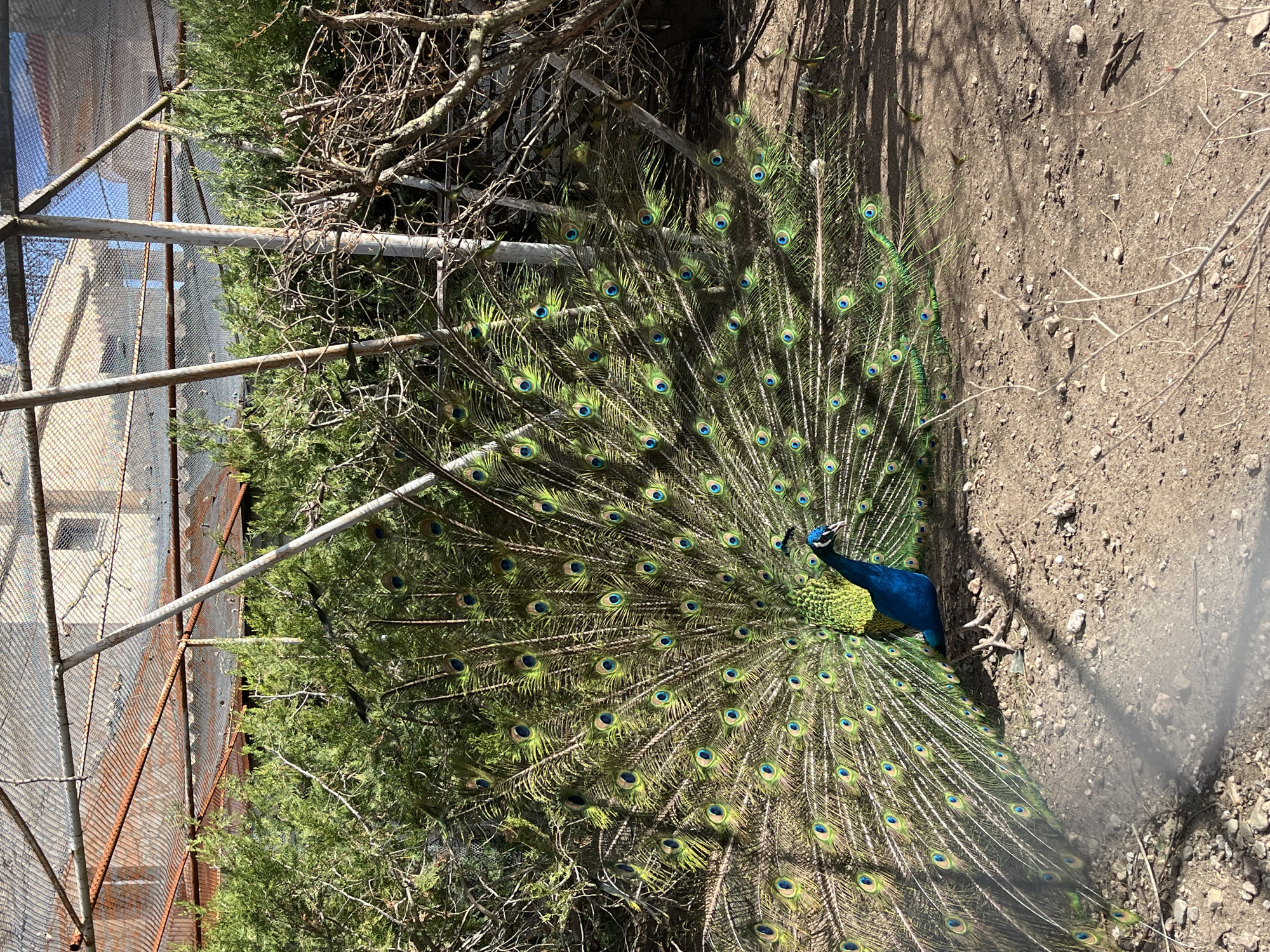 - "peacock with its tail feathers fanned out, standing on a dirt ground" by FM-tcM2L2, licensed under CC BY 4.0