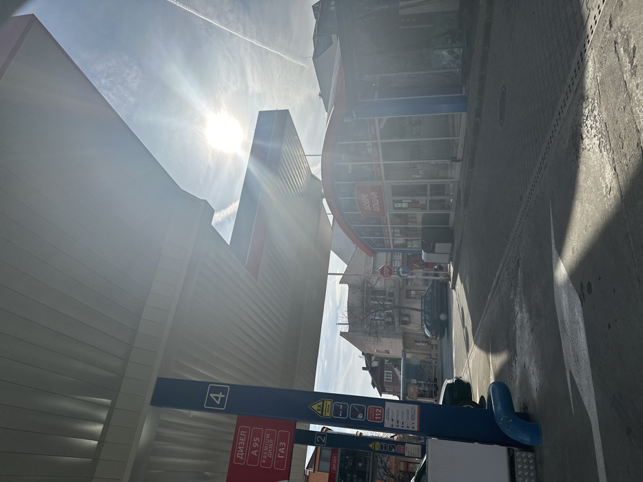 - "The image depicts a bright, sunlit gas station located in Vratsa, Bulgaria, under a partially cloudy sky with a visible contrail" by FM-CqdR22, licensed under CC BY 4.0
