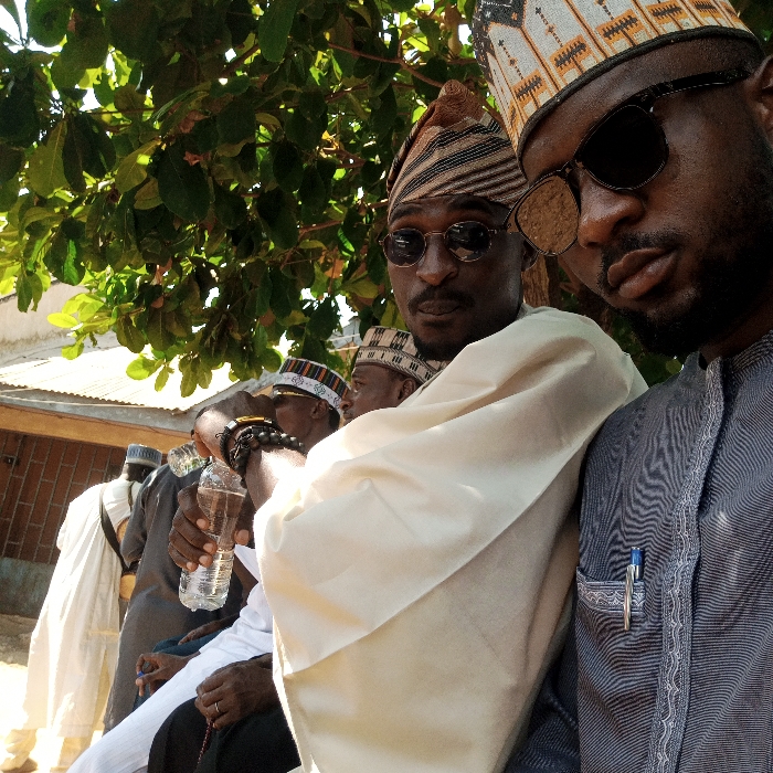 This image captures an outdoor gathering in Akwanga, Nigeria, under the canopy of green tree foliage