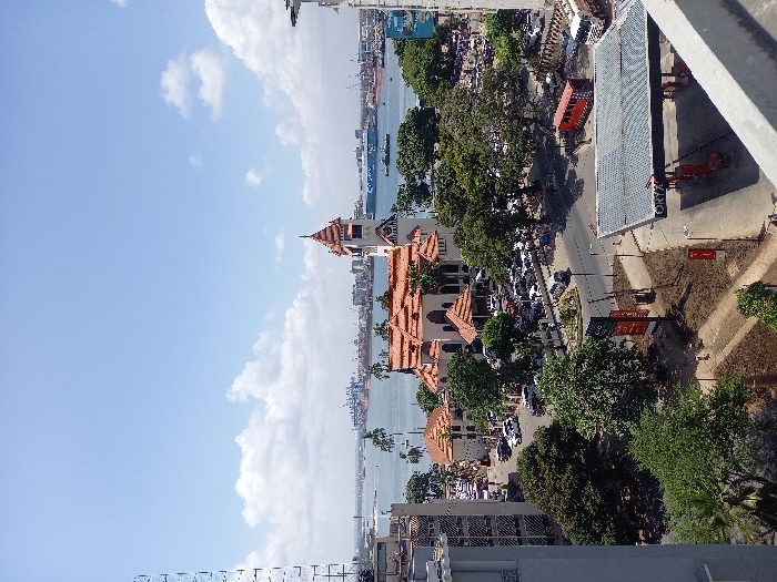 - "This elevated, wide-angle image captures a vibrant urban scene in Dar es-Salaam, Tanzania, looking eastward towards the Indian Ocean harbor under a partially cloudy blue sky" by FM-hgBMg1, licensed under CC BY 4.0