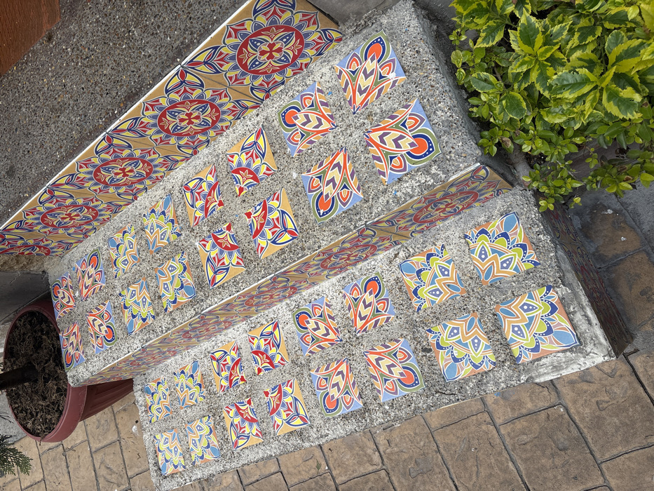 - "Concrete stairs are decorated with colorful, square tiles" by FM-htt4C2, licensed under CC BY 4.0