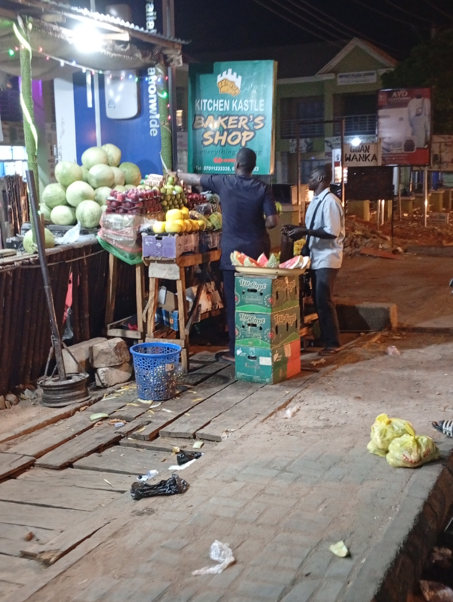 - "This nighttime image depicts a street scene in Gombe, Nigeria, featuring a fruit stand" by FM-ae3z52, licensed under CC BY 4.0