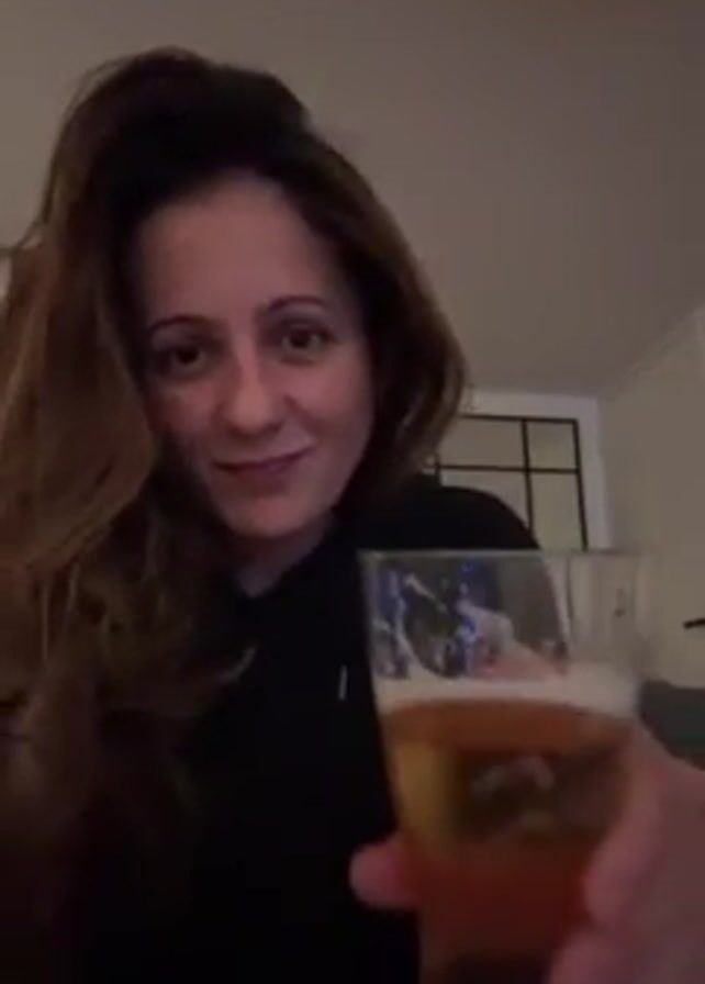 - "A woman with long, wavy brown hair, wearing a black sweatshirt, is holding a half-full glass of beer towards the camera" by FM-lMGvq1, licensed under CC BY 4.0