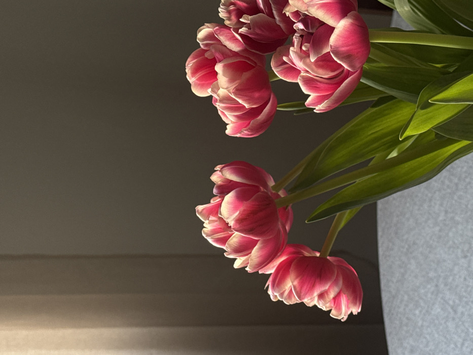 - "The image displays an indoor scene located in the city of Tel-Aviv, Israel, featuring a bouquet of double-petaled tulips" by FM-Q10cY2, licensed under CC BY 4.0
