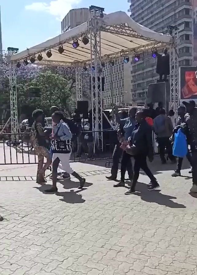 - "bustling urban scene with a stage set up in a paved public area" by FM-SVsgu1, licensed under CC BY 4.0