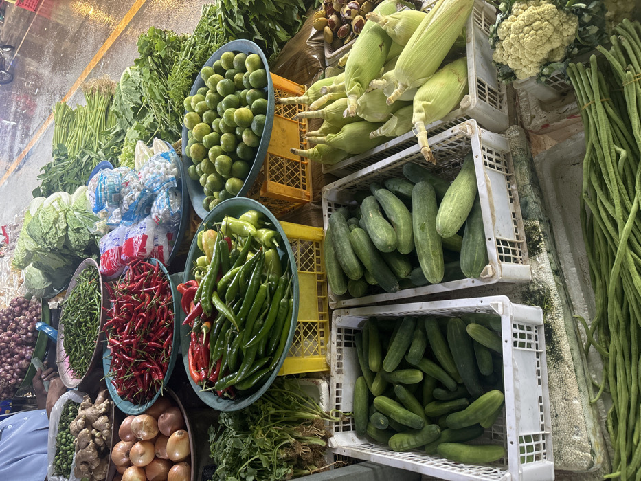 - "This image depicts a busy outdoor market stall in Thung Yao, Thailand, displaying a wide assortment of fresh produce" by FM-bmo3E3, licensed under CC BY 4.0