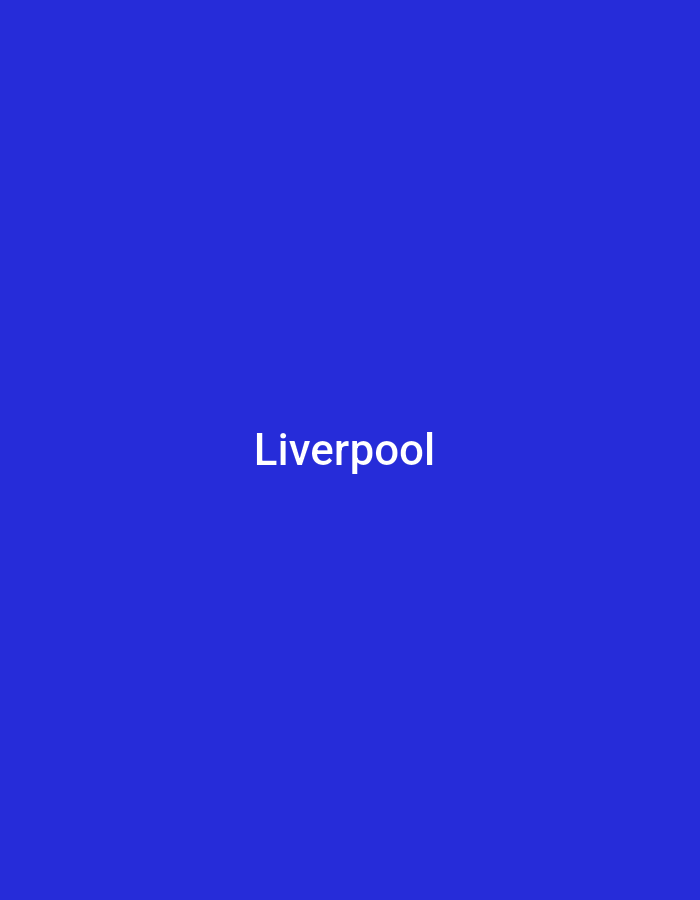 The image displays a uniform royal blue background. Centered horizontally on this background, the word "Liverpool" is rendered in white, sans-serif text. There are no people, physical objects, actions, or interactions depicted. The image does not portray a specific physical environment or location, and thus no details regarding the city of Parvomai, Bulgaria, are present.