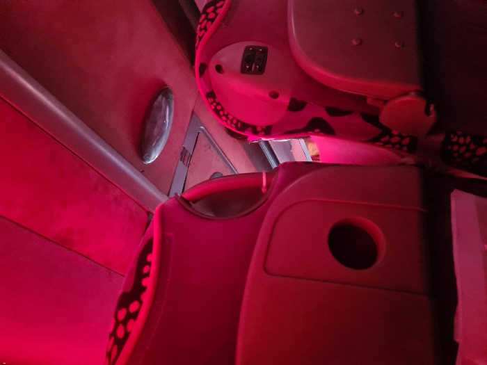 - "The image displays the interior of a passenger transport vehicle, such as a bus or train, bathed in strong red artificial light" by FM-9VsWL2, licensed under CC BY 4.0