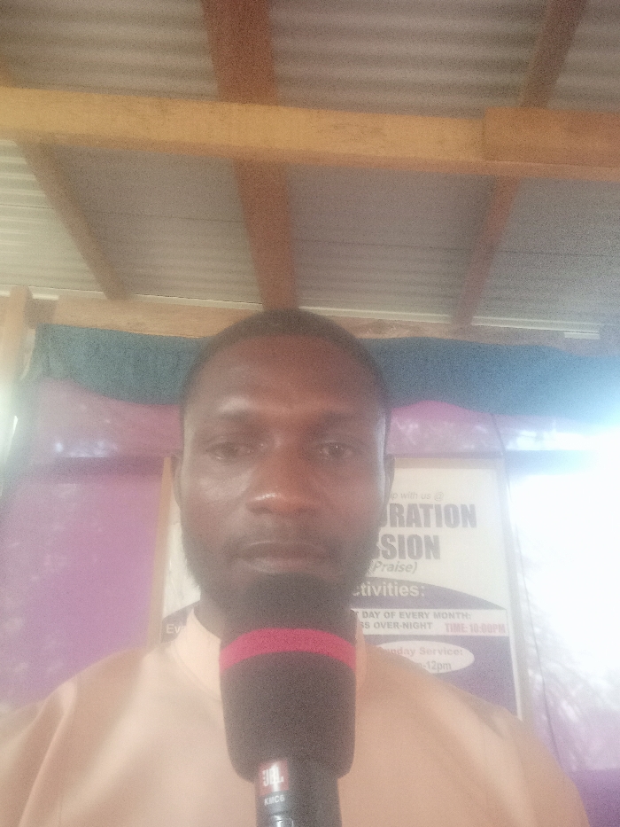 The image depicts a male individual positioned centrally, from the chest up, within an indoor setting in Nara Unateze, Nigeria