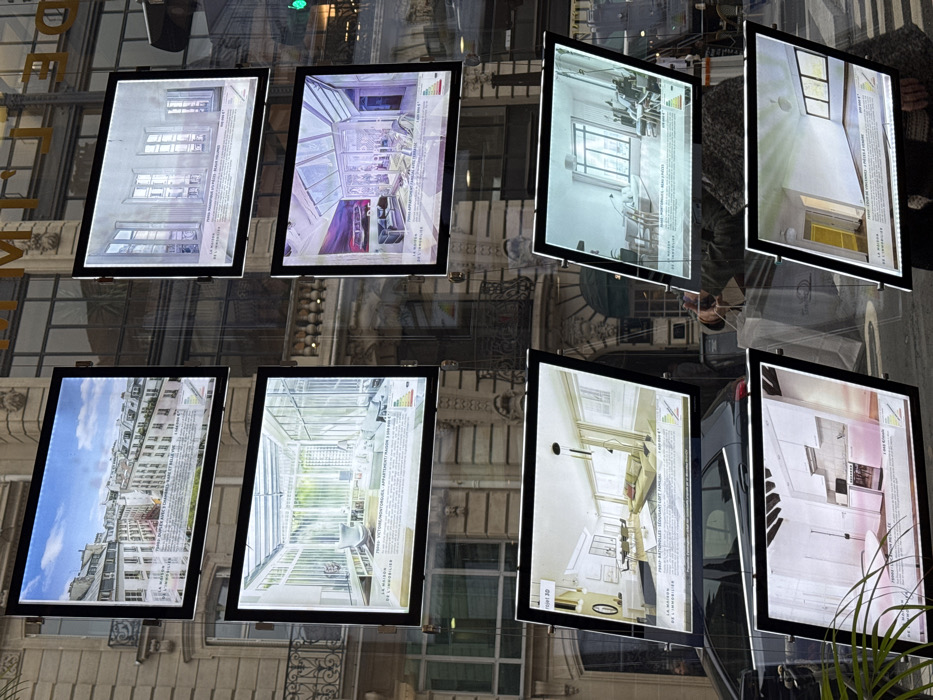 - "The image displays a street-level view through the reflective storefront window of a real estate agency in Paris, France" by FM-ilC4O2, licensed under CC BY 4.0