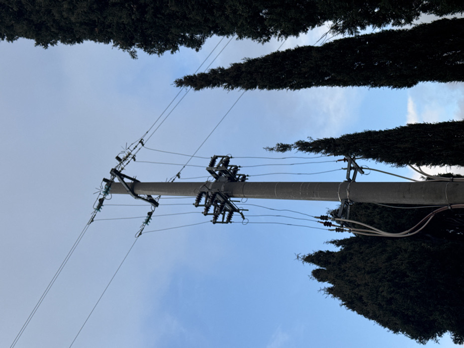 - "An upward angled shot reveals a gray utility pole centered against a pale blue sky with wispy clouds" by FM-IdNfF2, licensed under CC BY 4.0