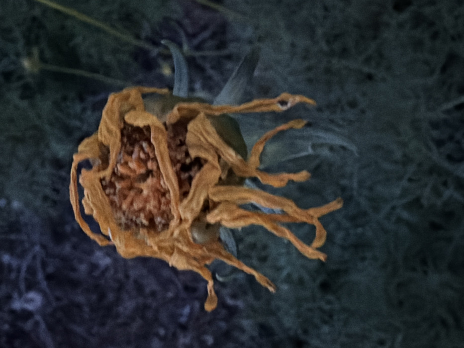 - "A wilting, dried sunflower head droops against a blurred backdrop" by FM-oB3Mx2, licensed under CC BY 4.0