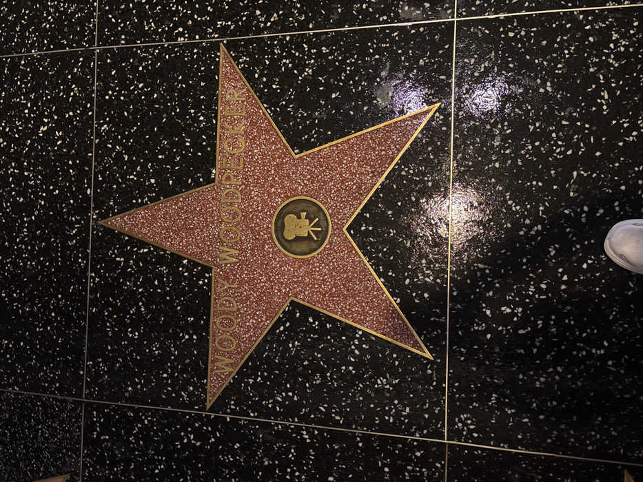 - "A star on the Hollywood Walk of Fame dedicated to Woody Woodpecker lies flush with a black terrazzo floor" by FM-97btd2, licensed under CC BY 4.0