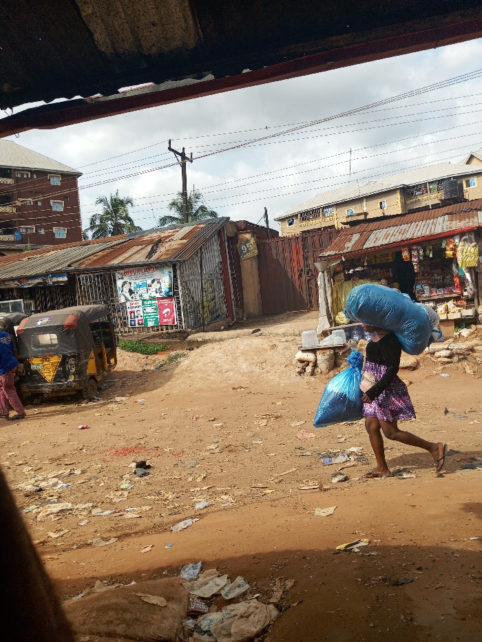 - "The image displays an unpaved, reddish-brown dirt street in Onitsha, Nigeria, under a partly cloudy sky" by FM-1O94j1, licensed under CC BY 4.0