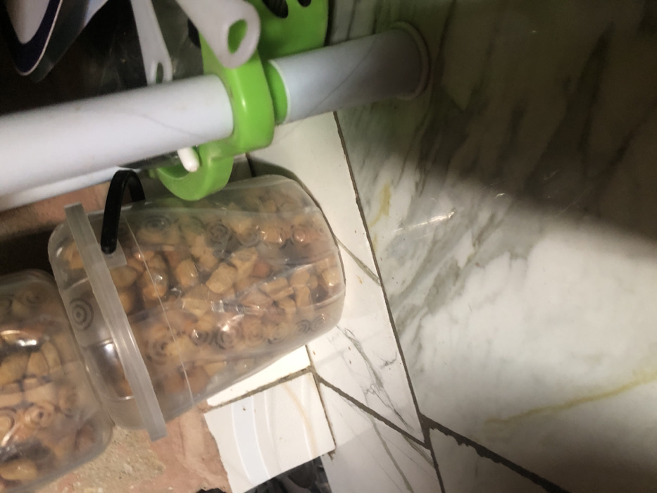 - "This image, captured in Dutsinma B, Nigeria, displays a close-up, low-angle view of two clear plastic containers holding numerous small, light brown, irregularly shaped snack items, consistent with mini cinnamon rolls or fried dough pieces" by FM-ubAvC2, licensed under CC BY 4.0