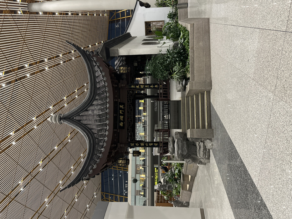 - "The scene depicts an indoor area within Beijing Capital International Airport (PEK) Terminal 3 in Shunyi District, China, featuring a detailed traditional Chinese architectural display" by FM-e0TMf1, licensed under CC BY 4.0
