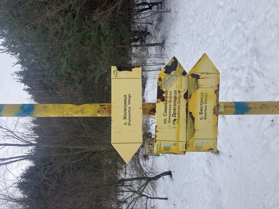 - "The image depicts a weathered yellow directional signpost located in a snow-covered, wooded area near Bistritsa, Bulgaria" by FM-6nb8J2, licensed under CC BY 4.0