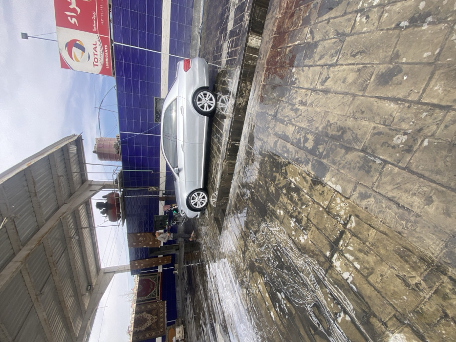 This image depicts an active car wash facility located in Ma'raba, Syria