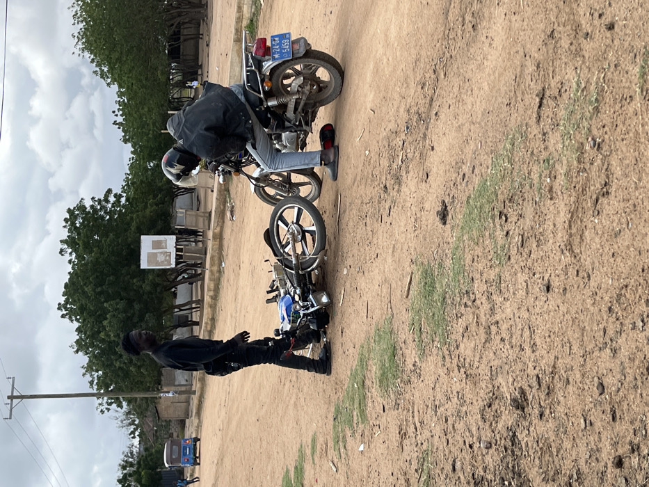 - "The image depicts two men and two motorcycles on an unpaved dirt road in Joma, Ghana, under an overcast sky" by FM-Nlg7v2, licensed under CC BY 4.0