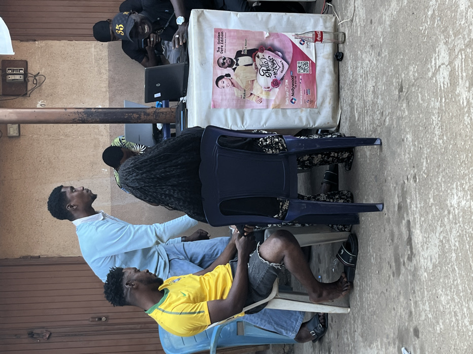 - "The scene depicts an outdoor gathering on a concrete surface in Narayi, Nigeria, set against a light brown building" by FM-xnj4q2, licensed under CC BY 4.0