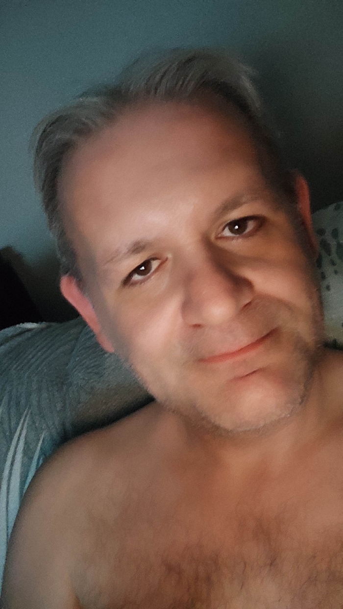 - "A Caucasian male, with short gray hair and a light beard, is lying on his back on a bed" by FM-0GXdJ2, licensed under CC BY 4.0