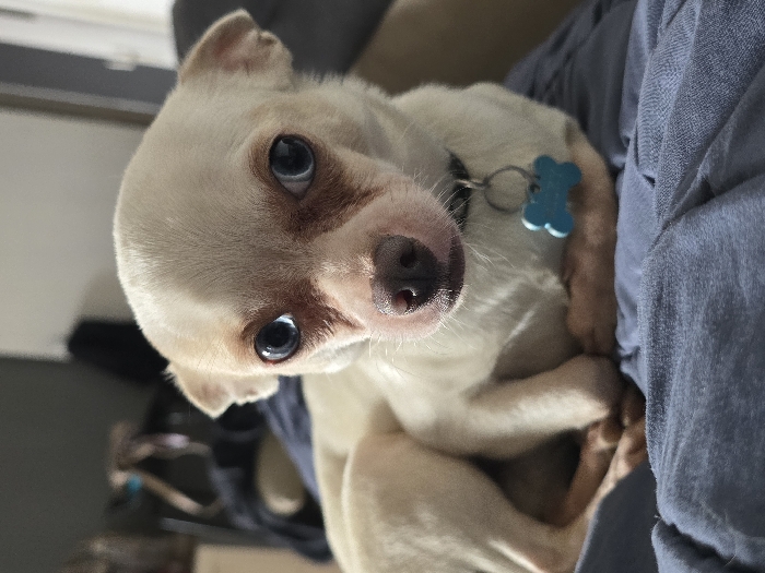 - "Within the city of Hem, France, a small cream-colored dog, consistent with a Chihuahua breed, is positioned in an indoor setting" by FM-dTRWD3, licensed under CC BY 4.0