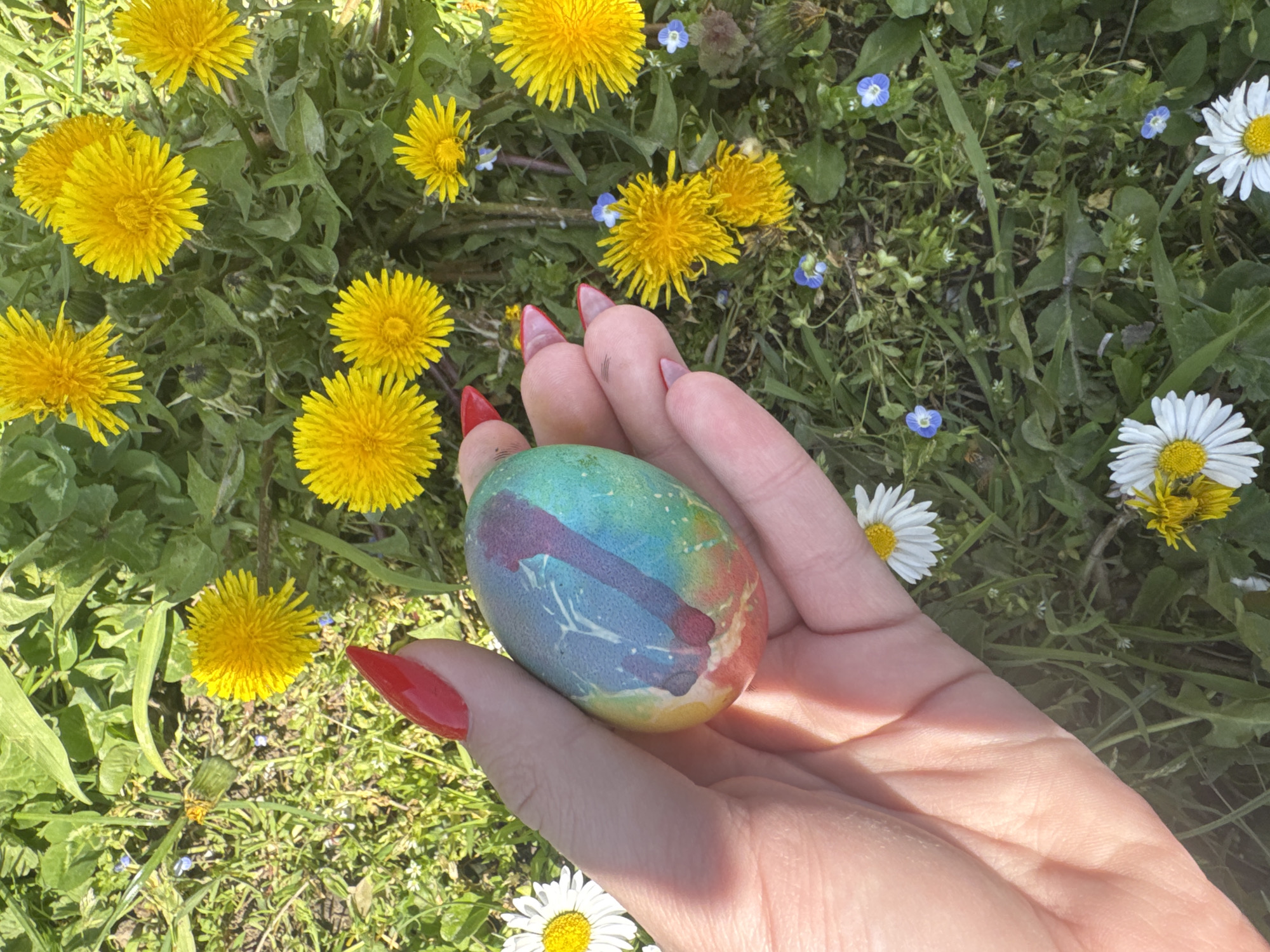 - "A hand with long, red fingernails holds a decorated Easter egg" by FM-kEoge2, licensed under CC BY 4.0