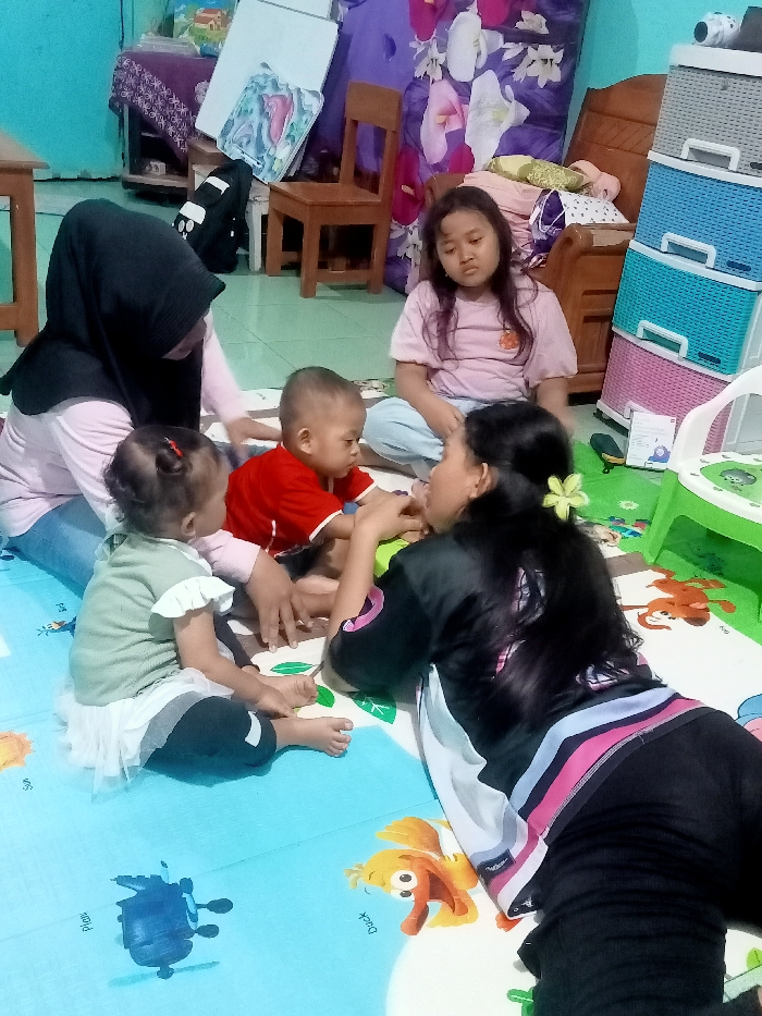 - "An indoor scene in a domestic or childcare environment in the city of Unknown, Unknown, depicts five individuals on foam playmats" by FM-5geVz2, licensed under CC BY 4.0