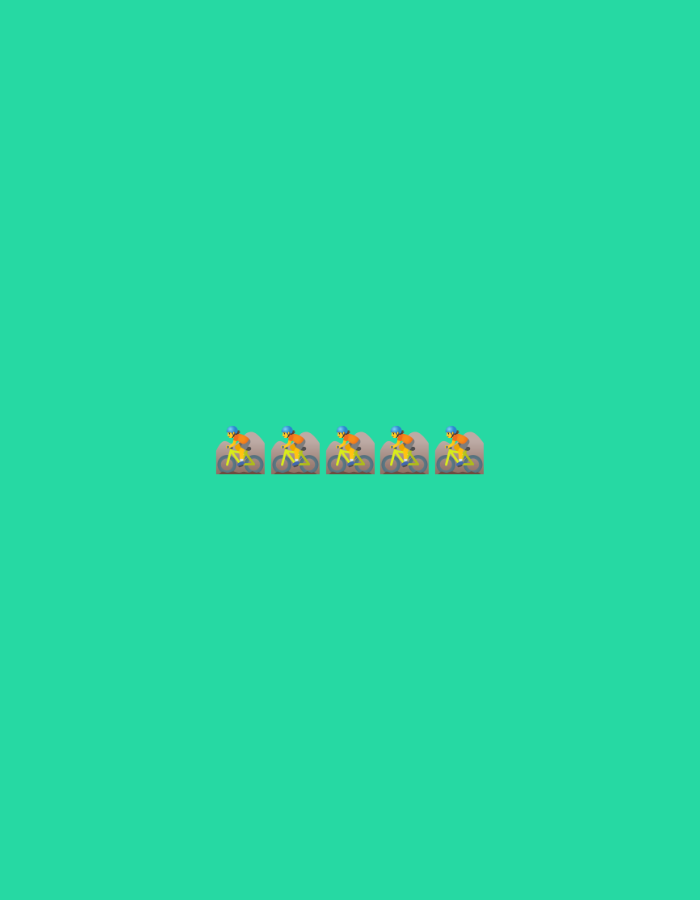five cyclists, each wearing a helmet and an orange shirt, riding their bikes in a line formation on a green background. The image was created using emojis and does not depict a real-world scene. The coordinates provided (latitude: 32.065, longitude: 34.775) locate the image in the heart of Tel Aviv-Yafo, Israel, near the intersection of Ibn Gabirol Street and Hayarkon Street. However, the image itself is not representative of this location. The image contains no other subjects, objects, or interactions. There is no visible environment or scene besides the green background.