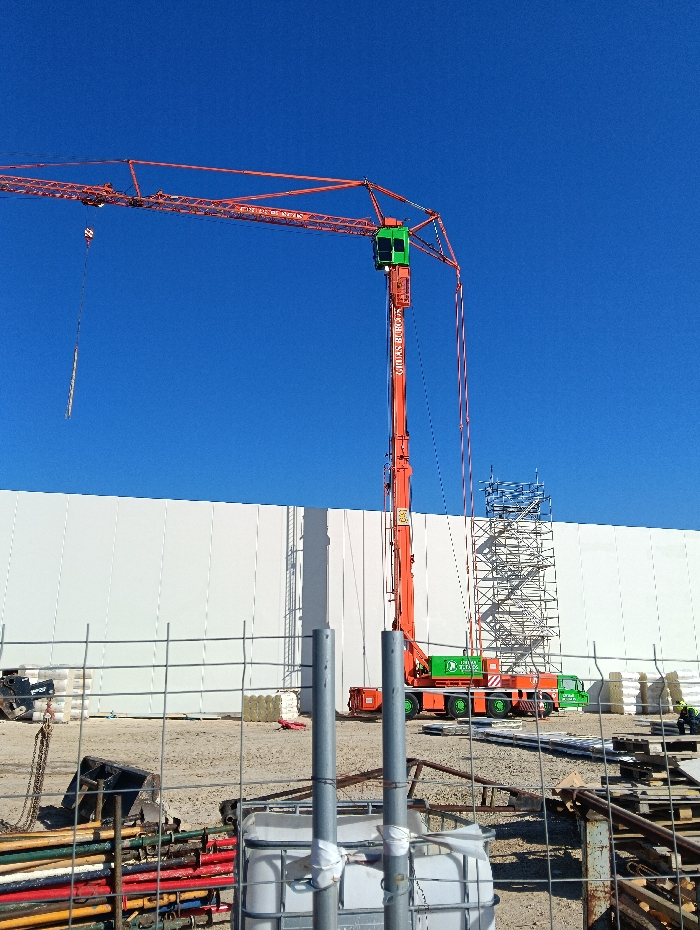 - "The image depicts a construction site under a clear blue sky, situated in or near Burgos, Spain, as indicated by the "GRUAS EL BURGO" and "GRUAS Y TRANSPORTES BURGOS" branding on the prominent mobile crane" by FM-XDbrs1, licensed under CC BY 4.0