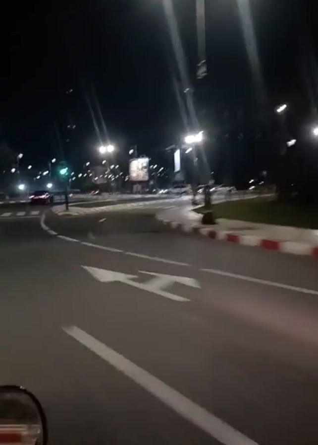 A nighttime video shot from the perspective of someone riding a motorcycle