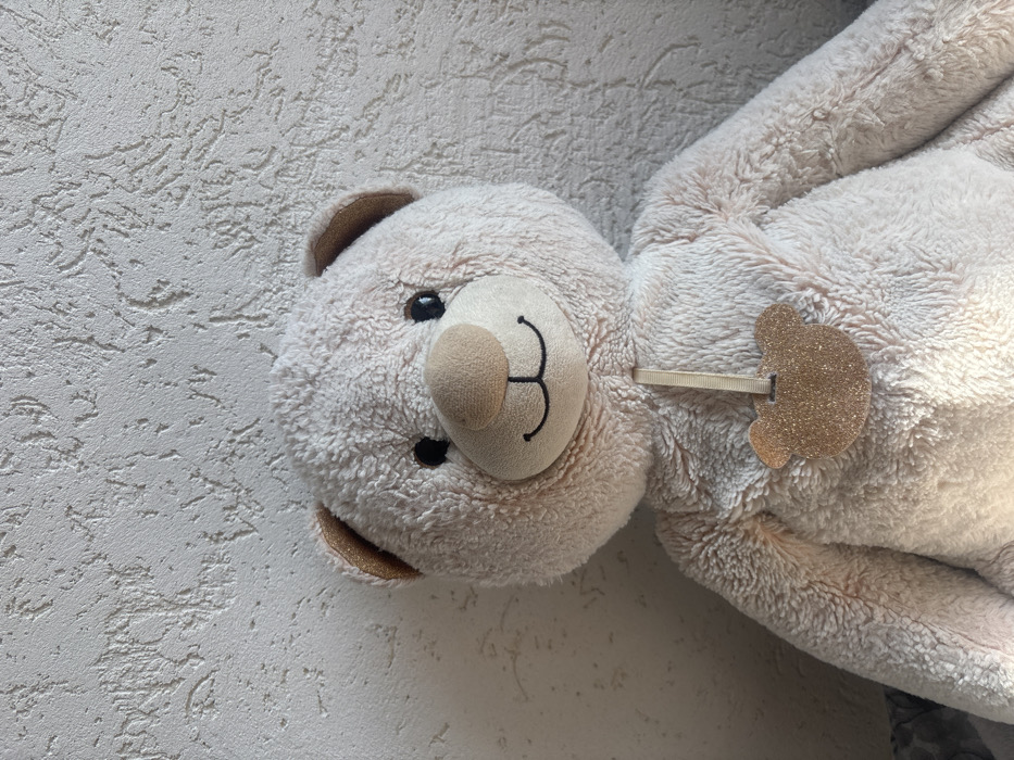 - "The image displays a light beige plush teddy bear in a frontal, medium close-up view" by FM-r8nDs2, licensed under CC BY 4.0