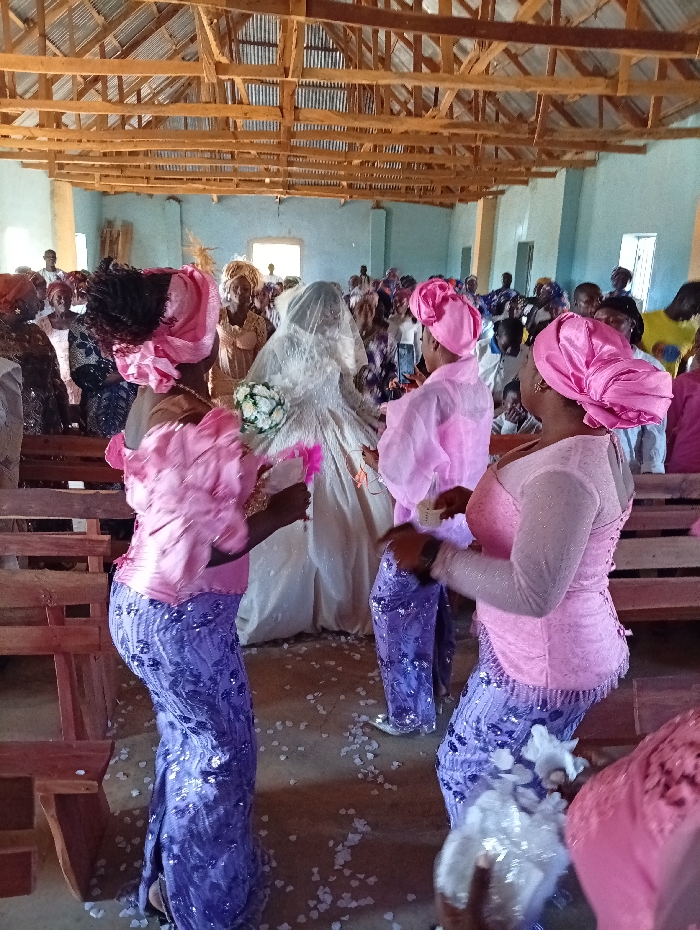 The image captures an indoor wedding ceremony in Kerang, Nigeria