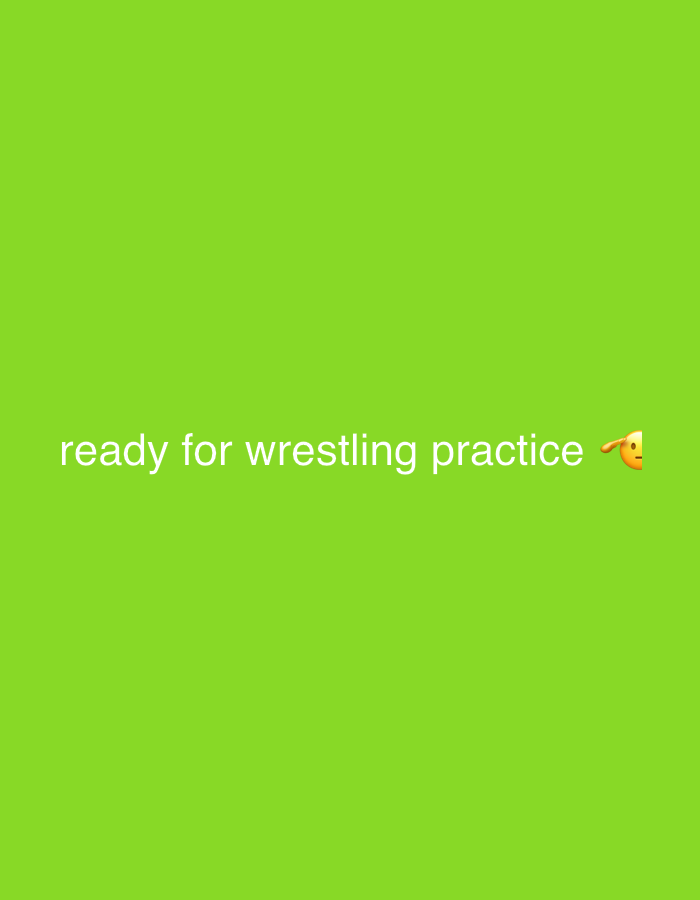 The image displays a solid lime green background. White text, centered horizontally in the lower portion of the frame, reads "ready for wrestling practice". To the immediate right of the text, a yellow-skinned emoji depicting a person shrugging is present. No other subjects, objects, or people are depicted. The image does not contain any visual elements that indicate a specific physical location, including the city of Gorski Izvor, Bulgaria.