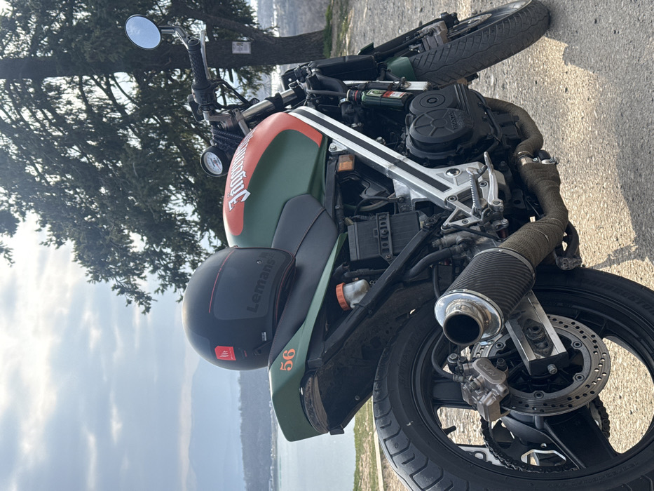- "A customized cafe racer-style motorcycle is stationary on an unpaved path, positioned overlooking the Ogosta Reservoir near Montana, Bulgaria" by FM-yKKHw1, licensed under CC BY 4.0