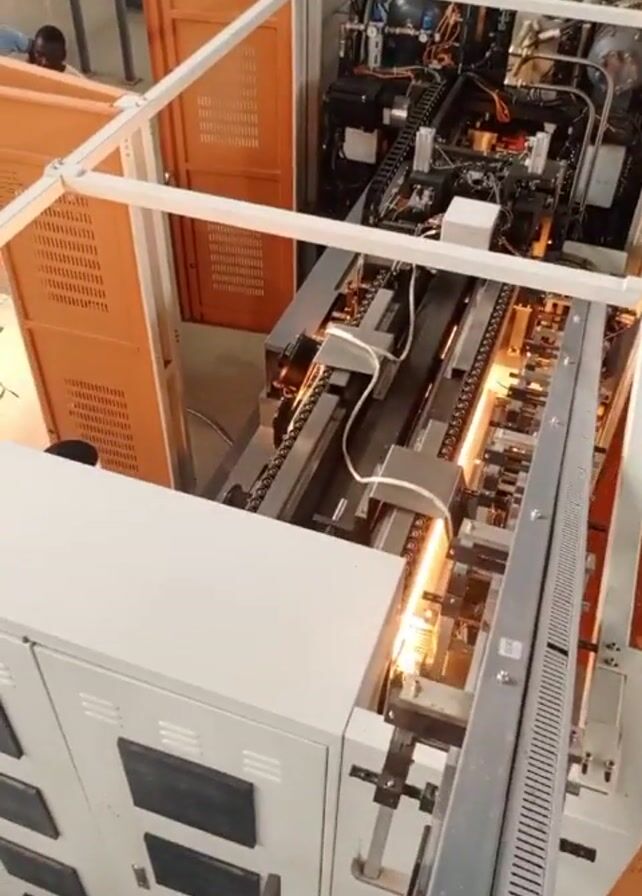 machine for manufacturing plastic bottles, inside a large factory