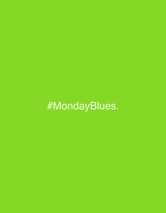 The image displays a uniform, vibrant lime green background. Centered on this background is the text "#MondayBlues." rendered in a light-colored, sans-serif typeface, followed by a period. No individuals, physical objects, actions, or interactions are present in the scene. The environment is entirely graphic and digital; there are no visual elements to indicate a physical location, including any specific city such as Tijuana, Mexico.