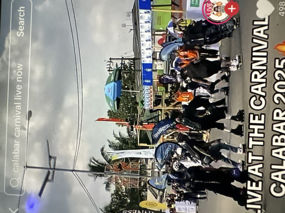 screenshot of a live stream or broadcast titled "LIVE AT THE CARNIVAL CALABAR 2025