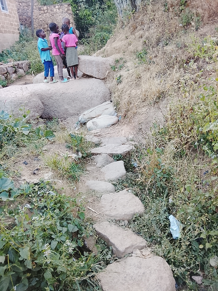 - "An outdoor scene in Jos, Nigeria, features five children standing on a large, light-colored granite boulder formation on an elevated dirt and rock path" by FM-m079f2, licensed under CC BY 4.0