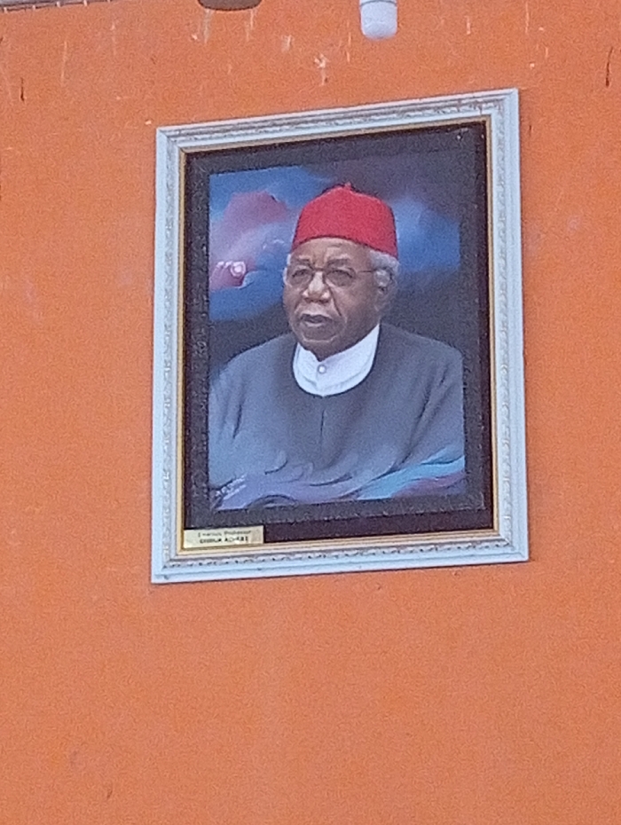 - "The image displays a framed painting of an elderly man, appearing to be of African descent, mounted centrally on an orange-painted wall" by FM-ANy5a2, licensed under CC BY 4.0