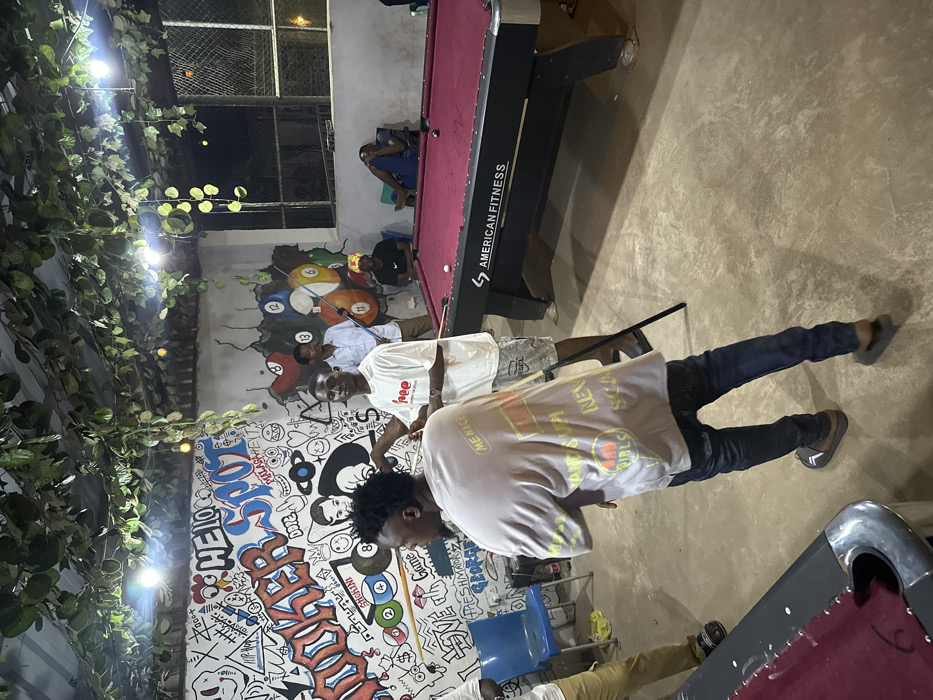 - "A group of men play pool in a room with graffiti art on the wall, featuring images, names, and symbols" by FM-6QTAm1, licensed under CC BY 4.0
