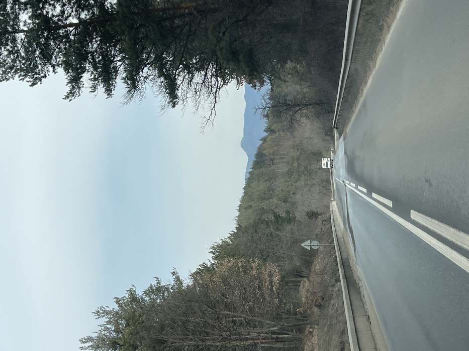 - "The image displays a two-lane asphalt road, marked with solid white lines at its edges and a double solid white centerline transitioning to a dashed white line for the opposing lane, extending through a forested valley near Kostandovo, Bulgaria" by FM-ubWSm1, licensed under CC BY 4.0
