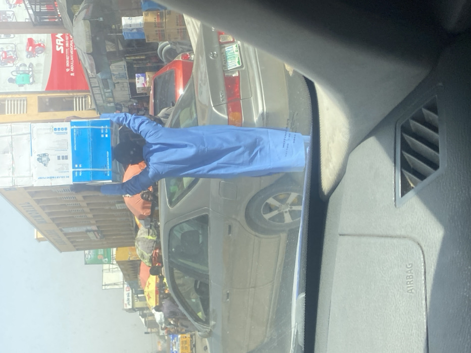 The image displays a busy street scene in Fagge C, Kano, Nigeria, observed from inside a vehicle