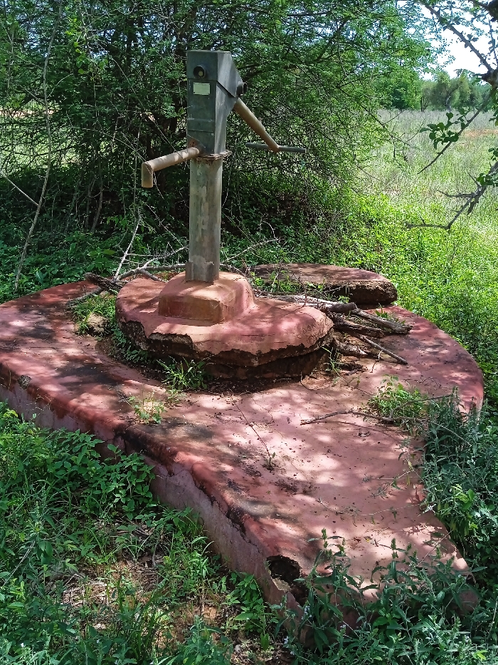 - "A hand-operated water pump, possibly a borehole pump, is centered on a multi-tiered, eroded reddish-brown concrete platform in Darajani, Kenya" by FM-MJcro2, licensed under CC BY 4.0