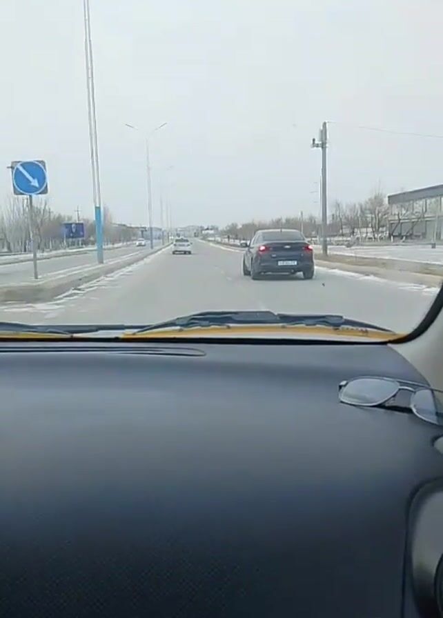 driver's point of view from inside a car moving along a road on a cloudy day
